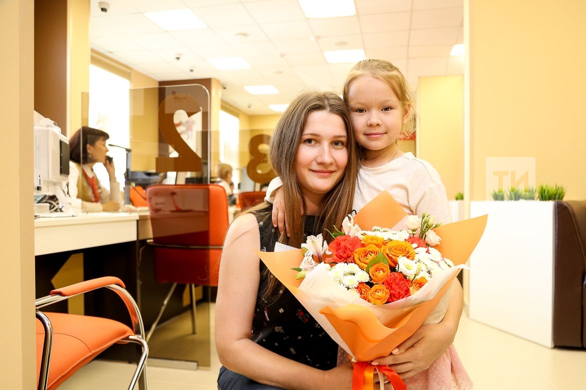 Первого заявителя, молодую маму, пришедшую оформлять ИНН для детей, в новом офисе МФЦ встретили с подарками – цветами и тортом.