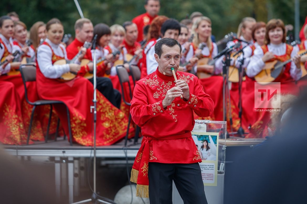 Оркестр народных инструментов РТ под управлением Анатолия Шутикова отыграл свою получасовую часть музыкального пленэра, как всегда, высокопрофессионально и без единого листа нотного текста. Как пояснил Шутиков, корифеям жанра понадобилось на отладку такого выступления более месяца усердных репетиций.