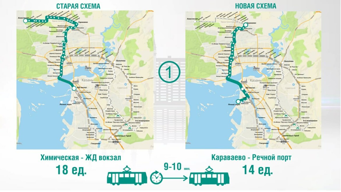 Ильдар Шакиров напомнил, что сейчас в Казани основой движения казанских трамваев является кольцо протяженностью 34 километра, которое охватывает все районы города. Изменения коснутся практически всех маршрутов, кроме маршрута № 4 (от остановки «ул. Халитова» до остановки «9-й микрорайон») и маршрута № 6 («Караваево» — «ул. Халитова»).