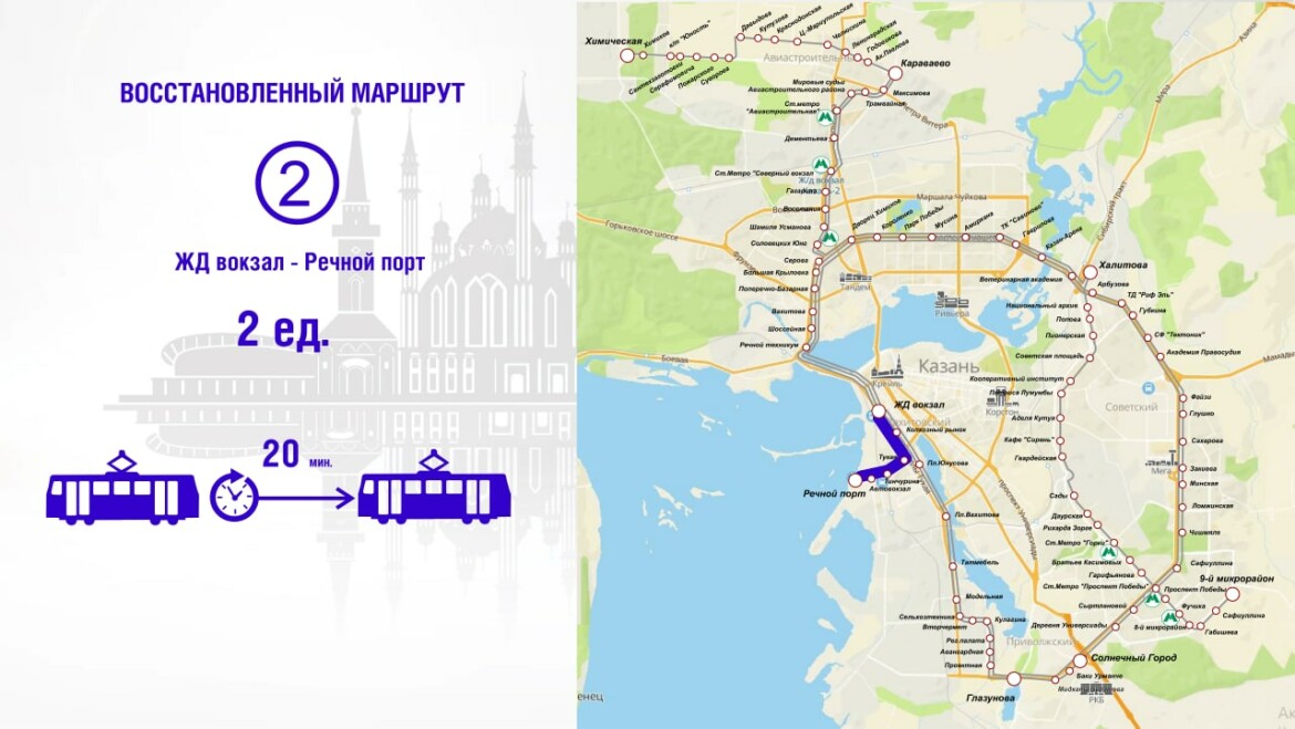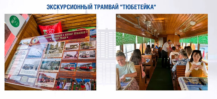 По маршруту № 2 начинает курсировать раритетный экскурсионный вагон «Тюбетейка» 1986 года выпуска, который ранее пользовался спросом у гостей и жителей Казани. При содействии Комитета по туризму была разработана новая концепция работы экскурсионного трамвая, проведен пробный рейс для туроператоров. Участники трамвайной экскурсии получат аудиогиды, а также подарочный набор, состоящий из треугольника, элеша и напитка.