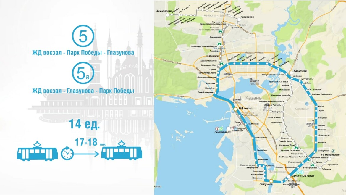 Ильдар Шакиров отметил, что запуск обновленной маршрутной сети потребовал большой подготовительной работы. На участке от улицы Татарстан до речного порта установлены 92 путевые тяги, очищены стрелочные переводы, заменен дефектный участок рельсов (не эксплуатировались с 2018 года), заменено более 300 метров рельсов контактной сети трамвая в обоих направлениях. Готовность трамвайных вагонов доведена до 92%, произведена перезапись автоинформаторов, объявляющих остановки, выполнен ремонт экскурсионного вагона, а в прошлом году МУП «Метроэлектротранс» установил электронные табло на всех трамвайных остановках по маршрутам № 5 и № 5а. Теперь на всех табло можно увидеть информацию о прибытии трамваев, а также об изменении маршрута, причинах задержки транспорта и времени их устранения.