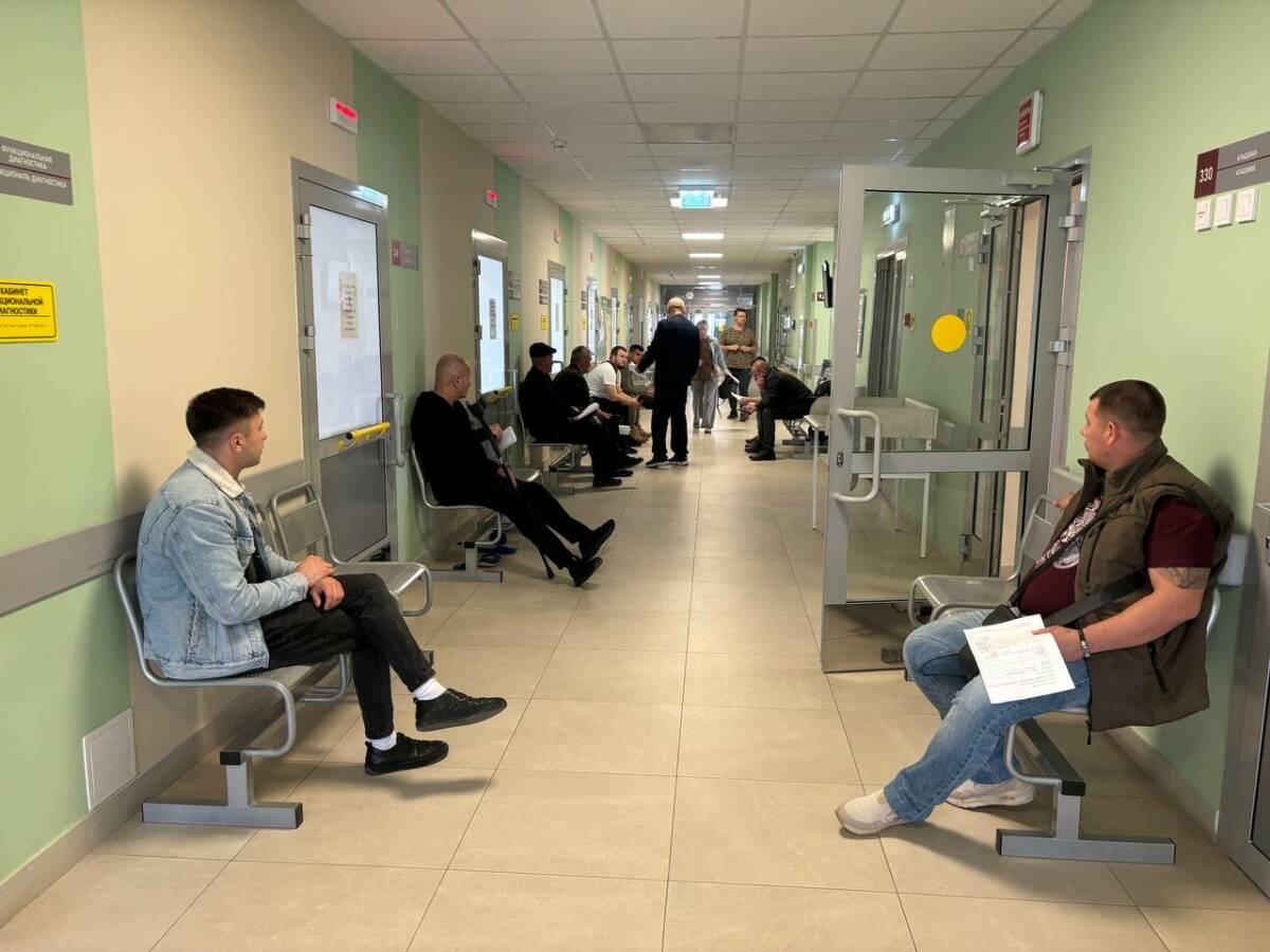 Медицинский осмотр был организован по специальному графику в выходной день – в субботу, чтобы бойцы могли пройти обследование без ожидания в очередях и не создавая нагрузку на общий прием пациентов.