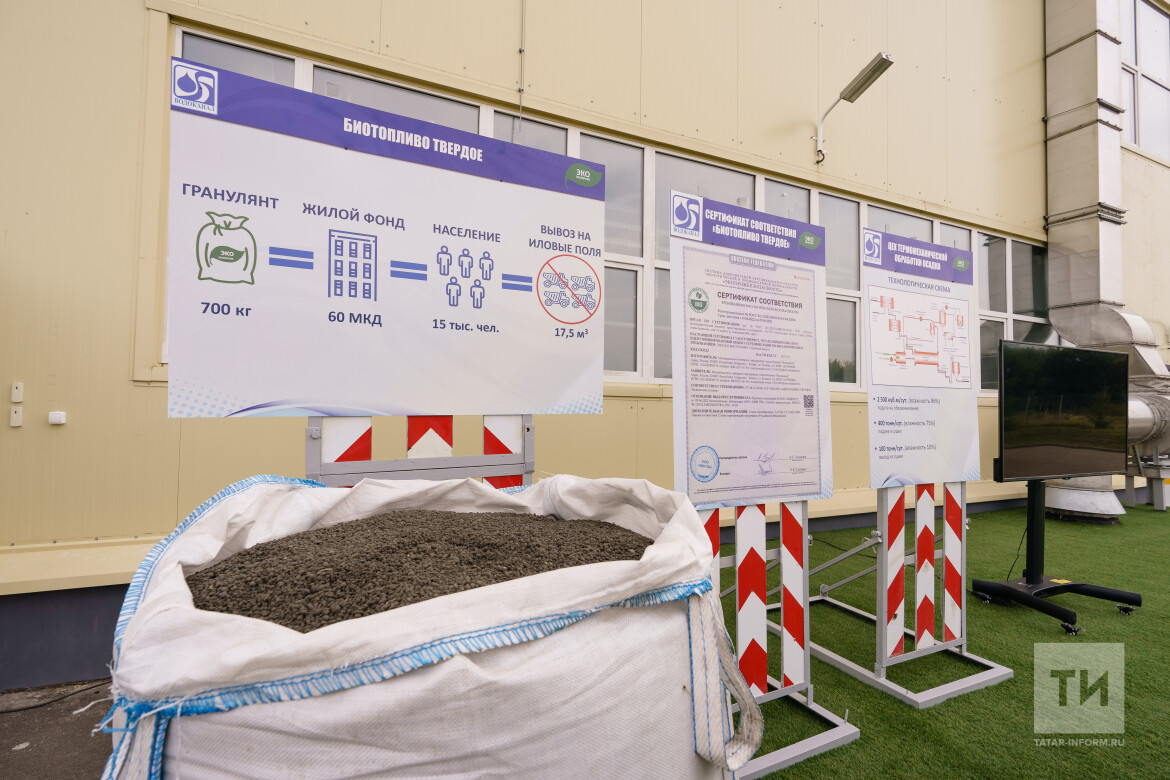 Построенный МУП «Водоканал» первый в России цех термомеханической обработки илового осадка начал поставки получаемого биотоплива на цементные заводы страны. Мэр Казани Ильсур Метшин и журналисты сегодня проинспектировали безотходное производство замкнутого цикла.