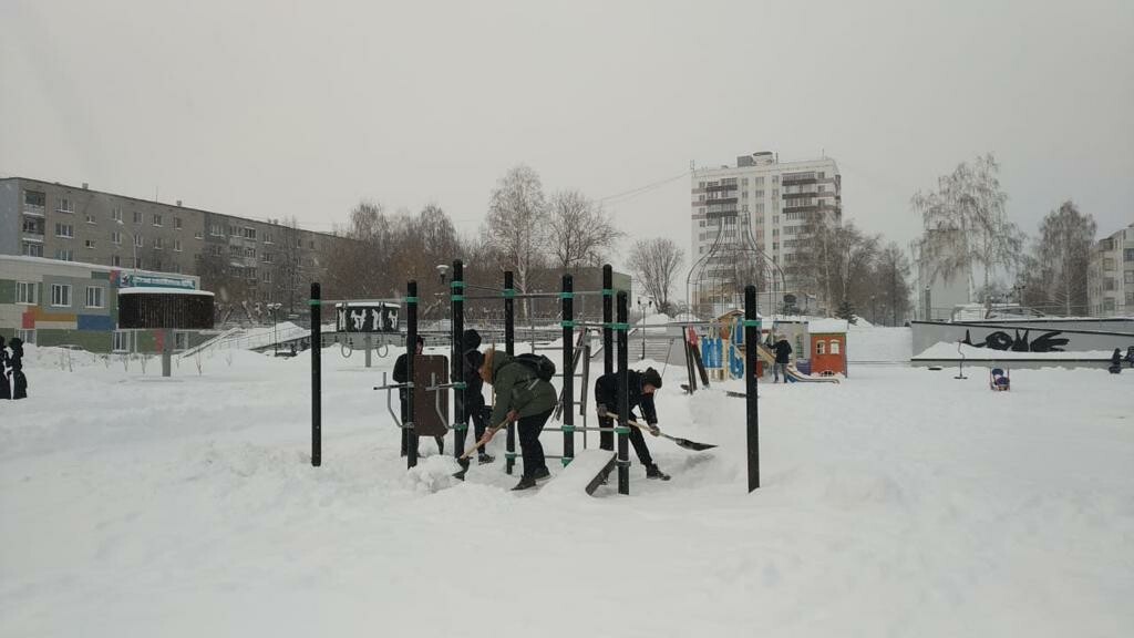После обильных снегопадов ребята оказали помощь сотрудникам муниципальных унитарных предприятий «ПАД» и «Горзеленхоз».