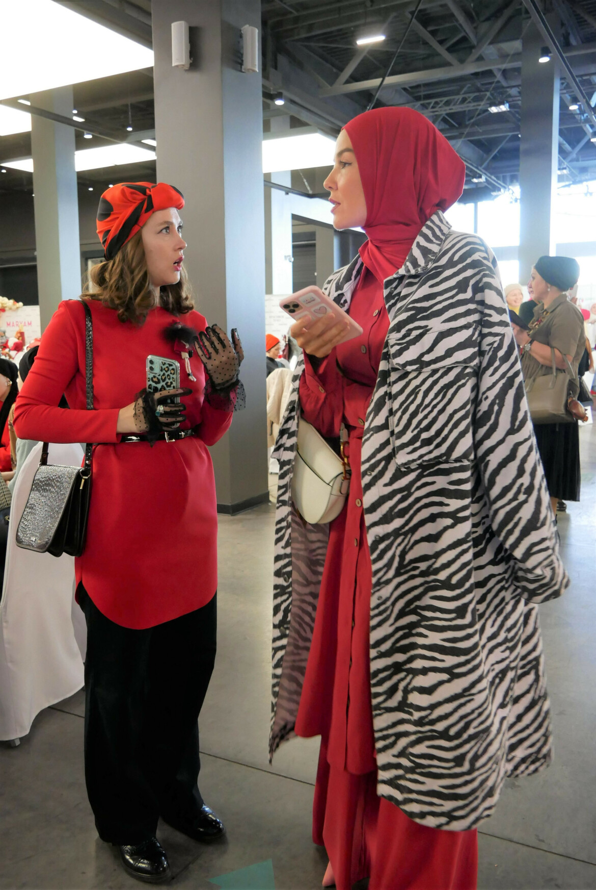 Хочется отметить, что на ифтаре присутствовали барышни разных возрастов. По нашим наблюдениям, более взрослые дамы соблюдали красный дресс-код меньше всех. К примеру, на одной из них мы заметили стиль «тотал блэк», голубой платок, а из красного был только чехол телефона.