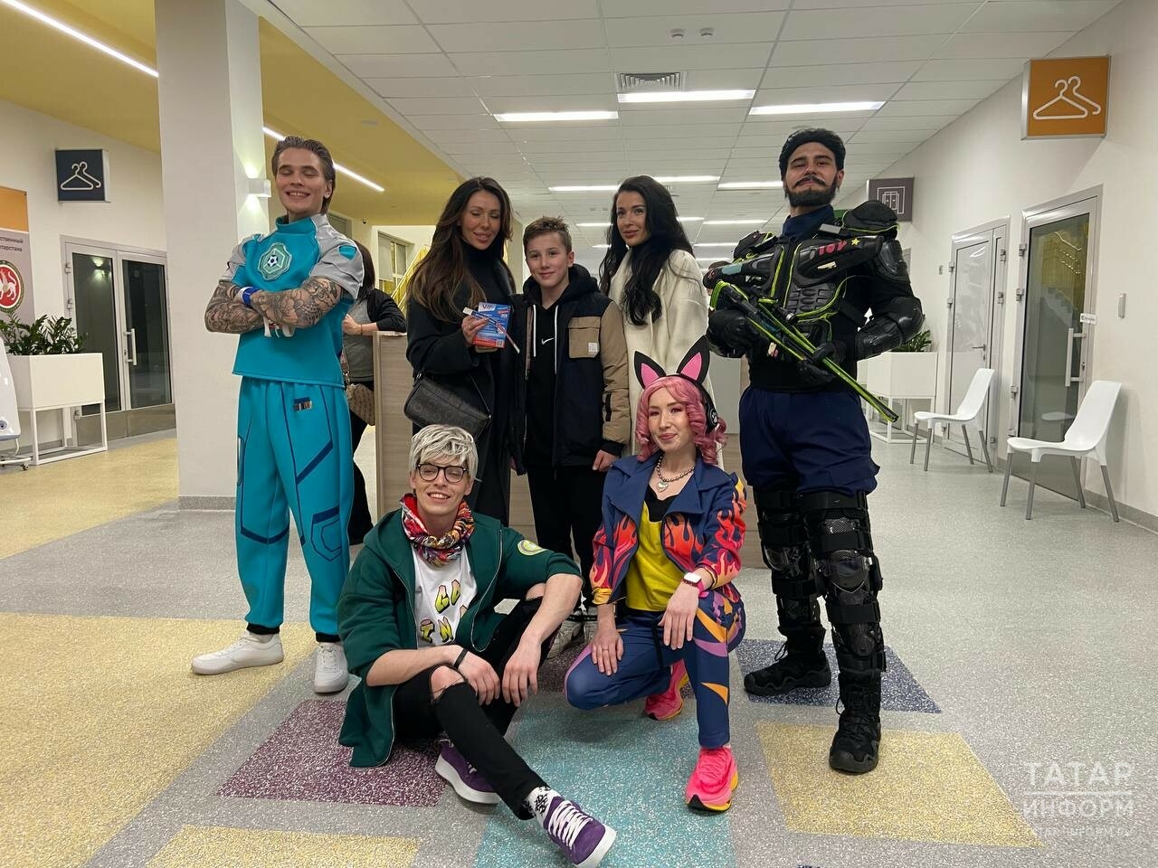 В фойе комплекса избирателей встречали пять персонажей-маскотов. Они рассказывали о прошедших мультиспортивных соревнованиях, а также о важности участия в выборах представителей молодого поколения.