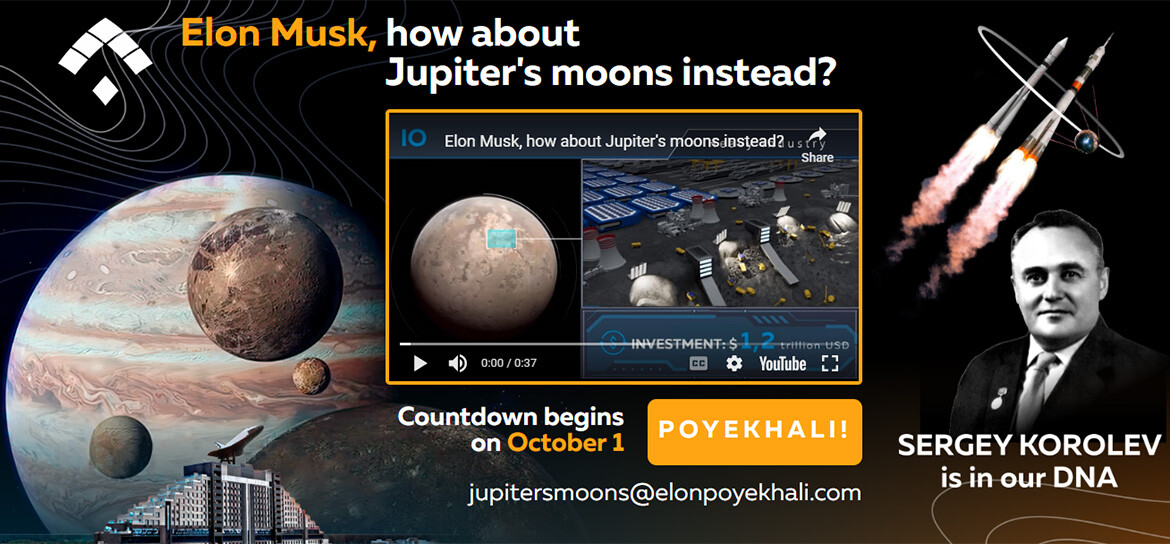 О планах покорения спутников Юпитера ОЭЗ «Алабуга» заявила накануне. И бросила вызов не кому-нибудь, а миллиардеру Илону Маску – напротив офиса Space X зона разместила билборд. Американцу напомнили, что именно в жилах русских ученых течет кровь Сергея Королева: «Илон Маск, что насчет спутников Юпитера? Обратный отсчет начинается 1 октября. Поехали!» На щите есть и QR-код – по ссылке размещено видео с инвестпроектами «Алабуги» на Юпитере.