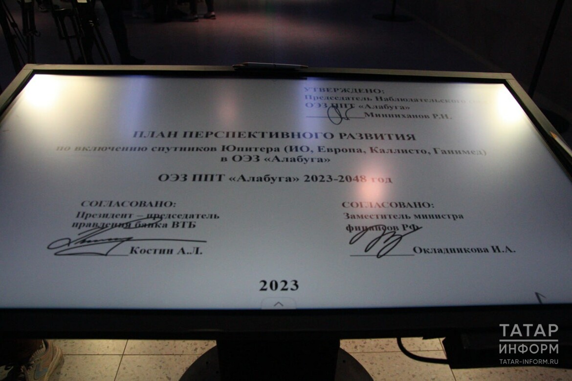 Он предложил почетным гостям подписать перспективный план развития особой экономической зоны по включению спутников Юпитера – Ио, Каллисто, Европу и Ганимед – в ОЭЗ «Алабуга». Что они и сделали.