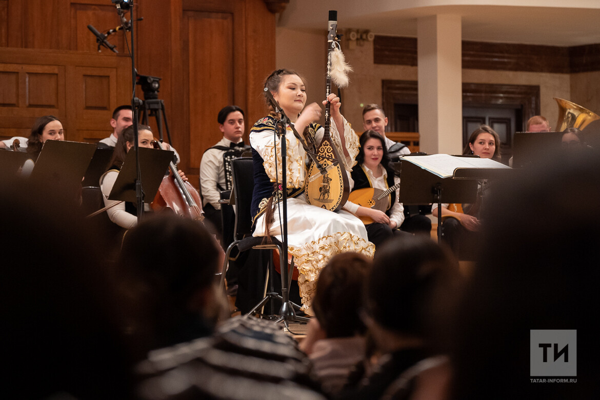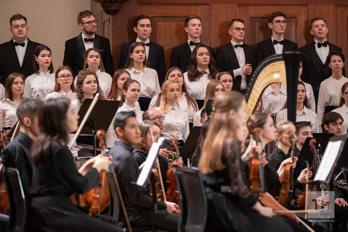 В двух отделениях были представлены «силы» Казанской консерватории – на сцену выходил Симфонический оркестр и Хор студентов вуза, а также оркестр Tatarica. И если за академическое звучание в ответе был лауреат международных конкурсов, дирижер Государственного академического Большого театра России Айрат Кашаев, то за дирижерский пульт перед оркестром Tatarica вышел его худрук – Ринат Халитов.