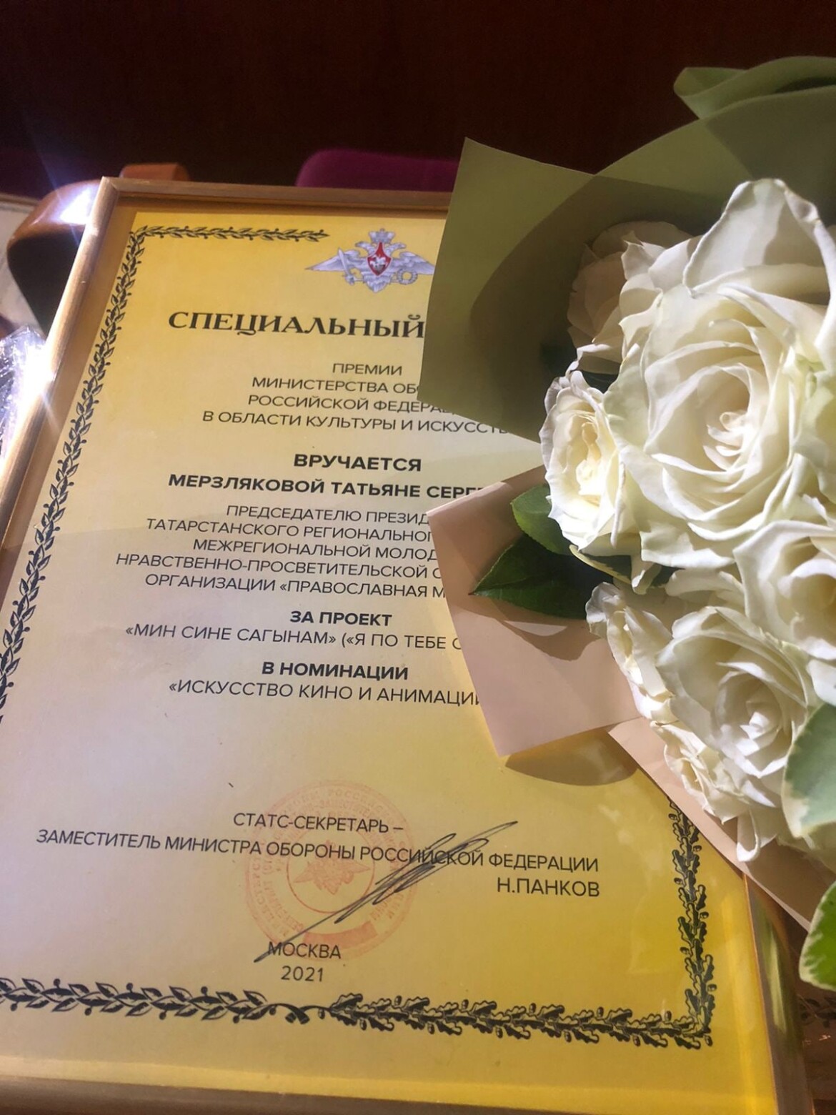 Картина «Мин сине сагынам» («Я по тебе скучаю») имеет специальный диплом Министерства обороны России