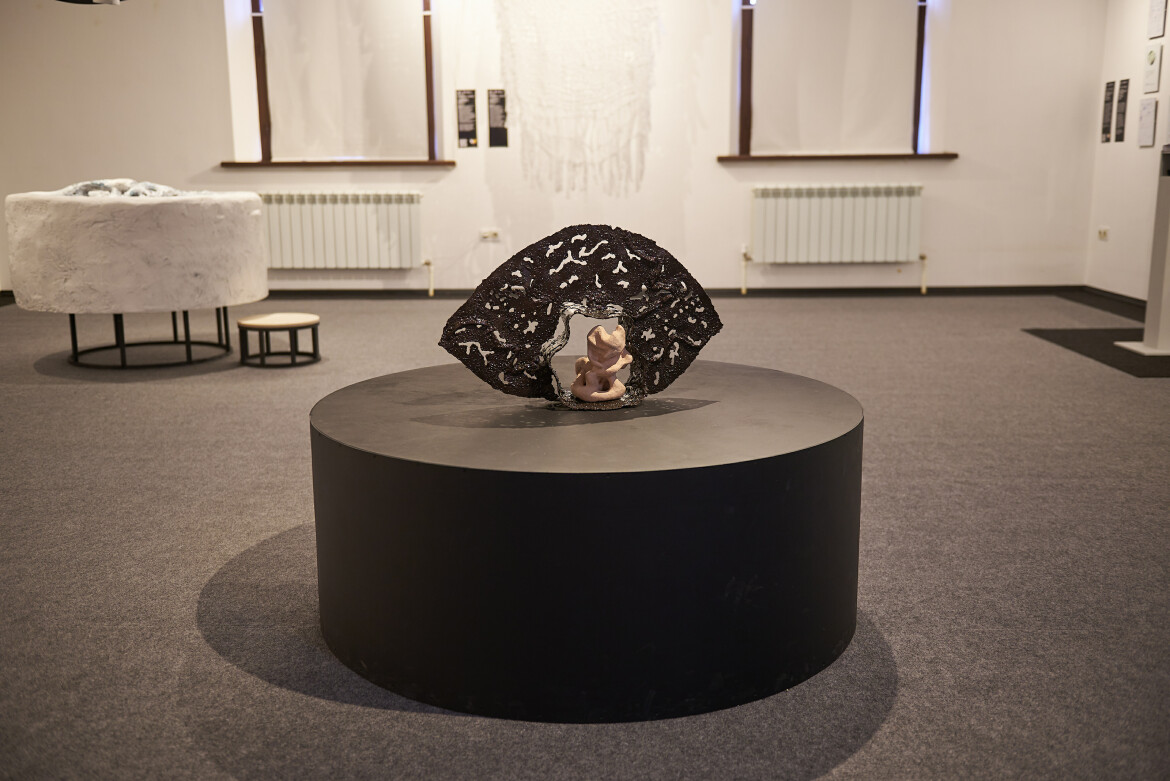 Инсталляция «Остров камней и равновесия» художницы Яны Васильевой выполнена из металла и папье-маше. Эта работа — метафора личных переживаний, когда порой человек словно находится в коконе и изолирован от мира.