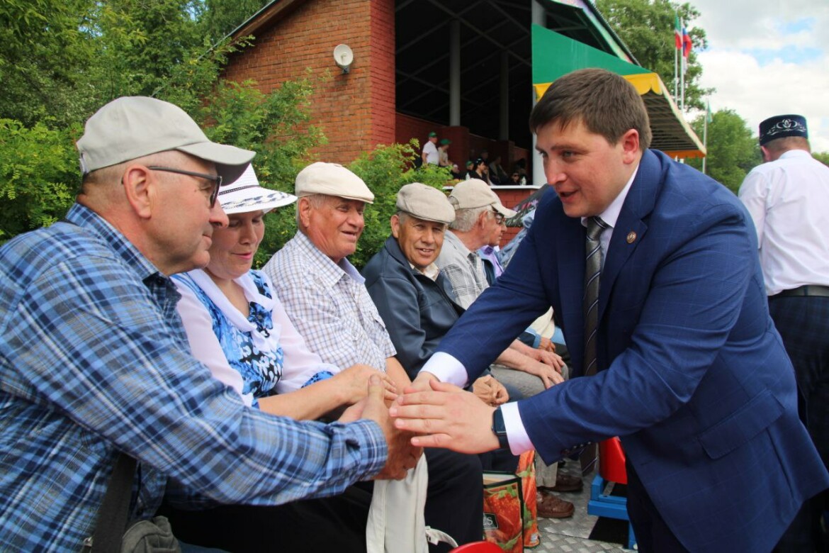 Ко всем присутствующим обратился руководитель района Радмир Беляев. В своем приветствии он чествовал работников полей. «Это любимый всеми праздник, на котором мы говорим аграриям "спасибо". Давайте вместе поприветствуем тех, кто сегодня обеспечивает продовольственную безопасность республики и страны — наших аграриев. И тех, кто заложил традиции крепкого сельского хозяйства — ветеранов отрасли. Благодаря их труду сохраняются традиции аграрной отрасли нашего района. У нас есть потомственные аграрии — хозяйства, которые ведут династии — дети продолжают дело своих отцов и дедов. Это Аглиевы из Камаевского поселения, Хайриевы и Васильевы из Енабердинского поселения», — сказал он.