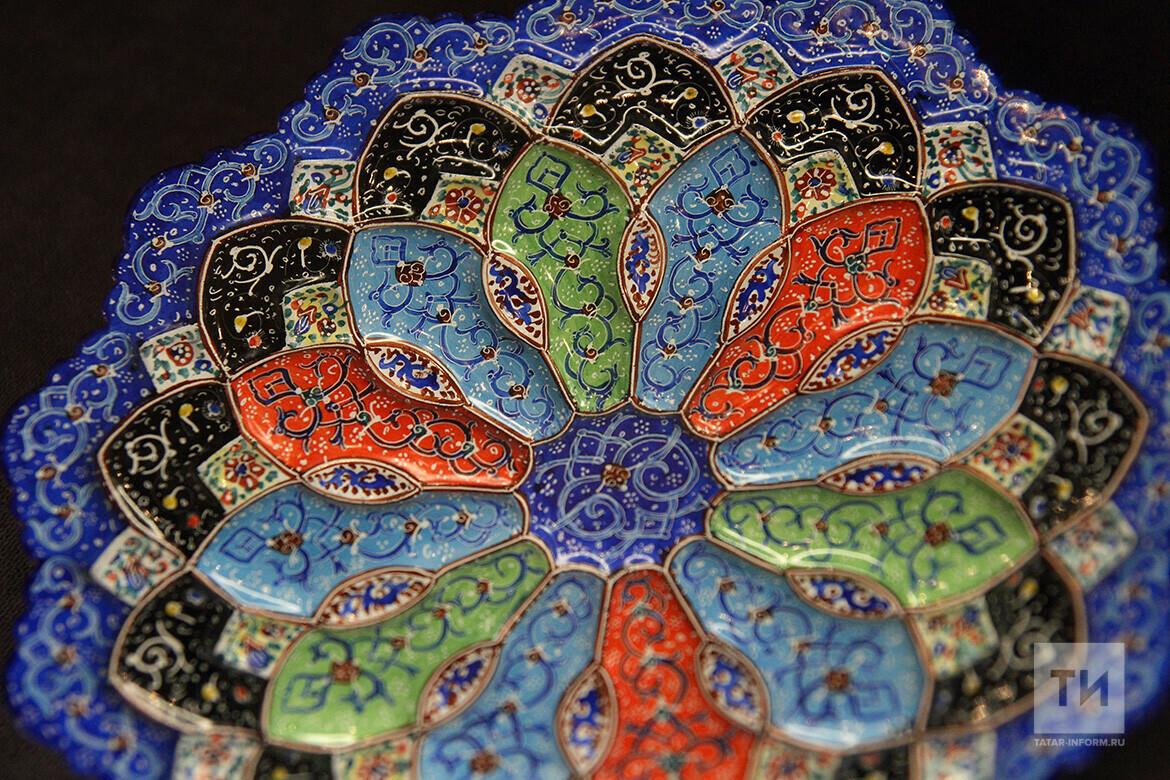 Первую экскурсию по выставке «Сокровища Ирана» генеральный консул Ирана в Казани провел для первых гостей лично.Давуд Мирзахани подчеркнул, что чеканка по металлу (меди) галамзани выполняется не просто иранскими ремесленниками, а именно женщинами. Чтобы соткать лоскут в технике терме размером 20 на 25 см мастер работает с несколькими помощниками и то на это уходит 8-12 часов работы. Зеркало и два подсвечника в технике минакари в Иране, рассказа Генконсул, – традиционный подарок для молодоженов. А для декора шкатулок мозаикой ремесленники используют апельсиновое, эбеновое дерево, кипарис, а также кости – например, верблюда. Это техника хатамкари – древнее искусство инкрустации по дереву.