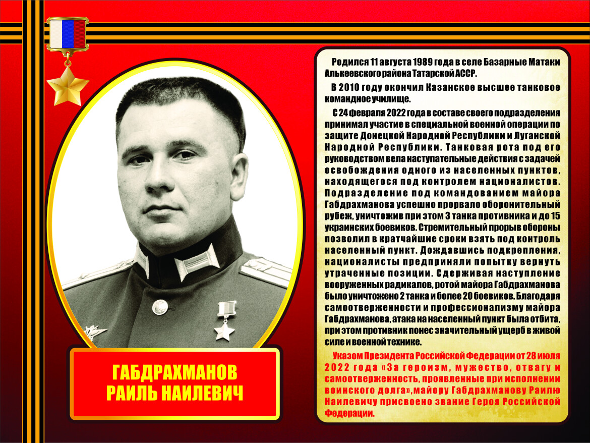 Одиннадцать выпускников прославили Казанское танковое училище, совершив подвиги во время спецоперации на Украине. Все они получили звание Героя России. Одни удостоились высокой награды ценой своей жизни, другие продолжают отстаивать и защищать рубежи нашей Родины. «Татар-информ» рассказывает о героях и вспоминает их подвиги.