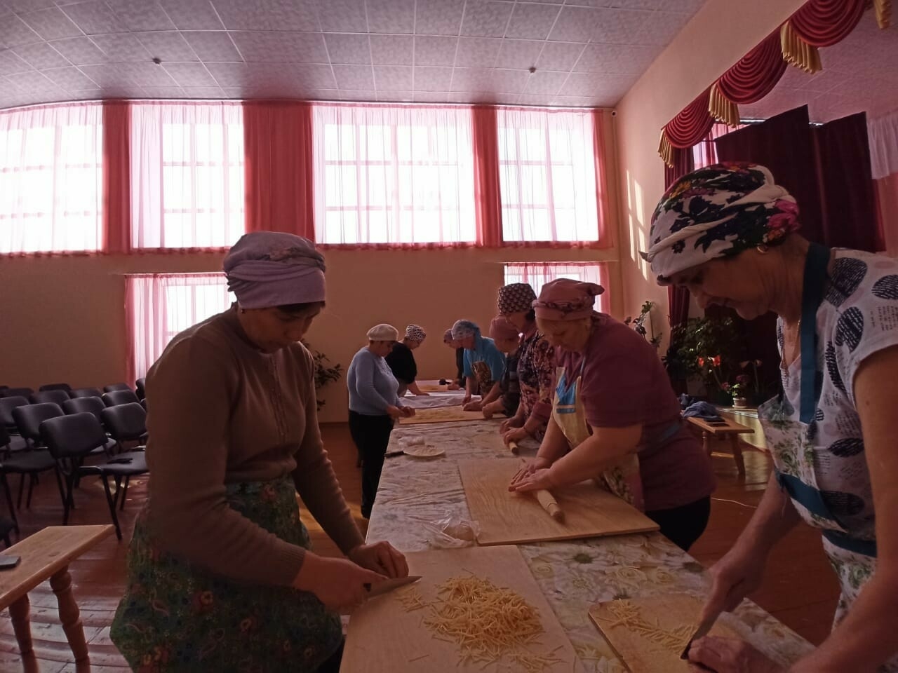 В этот раз сотрудники малокармалинского сельского Дома культуры собрались, чтобы дружно приготовить традиционную татарскую домашнюю лапшу для бойцов. Лилия Гильмуллина, Фания Тазетдинова, Наиля Ибниева, Рауза Миннуллина, Альфия Гибадуллина, Фанзия Муталлапова, Зухра Рахимова, Гузалия Каримова, Гульнур Гизятова, Зифа Садриева нашли время, расставили столы и принялись за работу.