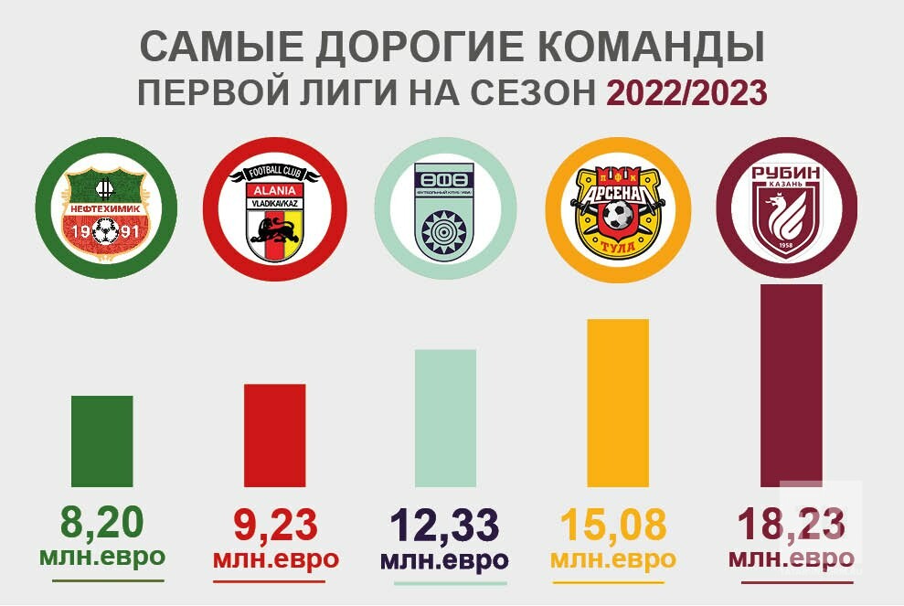 При этом «Рубин» обладает сильнейшим по стоимости игроков составом в Первой лиге. Цена составляет 36,93 млн евро по оценкам авторитетного портала Transfermarkt. Конечно, здесь пока уместно вычесть стоимость Бегича, Тальби, Абильдгора, Ин Бома и Хакшабановича, которые уже практически точно не вернутся в Казань. Но и в таком случае сумма получается внушительная – 18,23 млн евро. Как вы видите, казанцы по этому показателю с комфортным отрывом лидируют в списке самых дорогих клубов Первой лиги. А ведь тот же Тальби имееет некоторые шансы вернуться в Казань и еще больше увеличить финансовый отрыв «Рубина» от основных конкурентов.