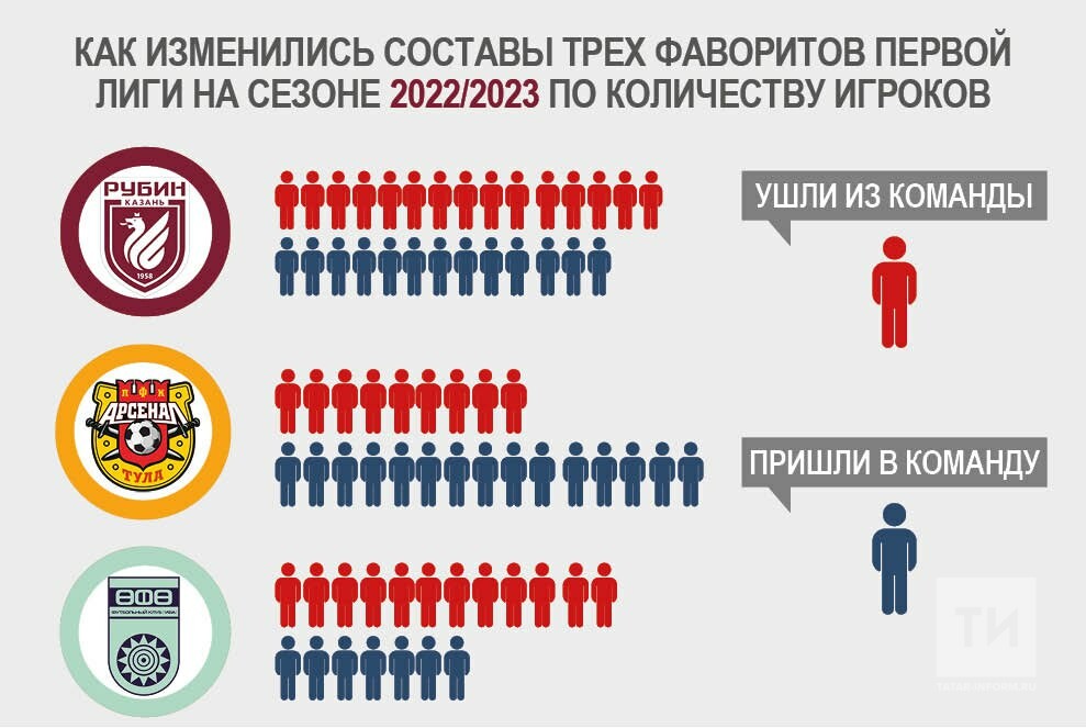 Цифры подтверждают, что в «Рубине» изменения в составе наиболее заметные – команду покинуло 15 игроков и 13 новых пришло. Но ведь все выходцы из РПЛ в новом сезоне, как видим, также изменились до неузнаваемости. «Арсенал» покинуло 9 футболистов, 15 пришло. А в столице Башкирии недосчитались 12 игроков при пополнении в 7 футболистов. И при этом та же «Уфа» на рынке выглядела куда скромнее своего принципиального соперника из Татарстана. В целом же проблемы, о которых говорит Слуцкий, также актуальны и для «Уфы», и для «Арсенала».