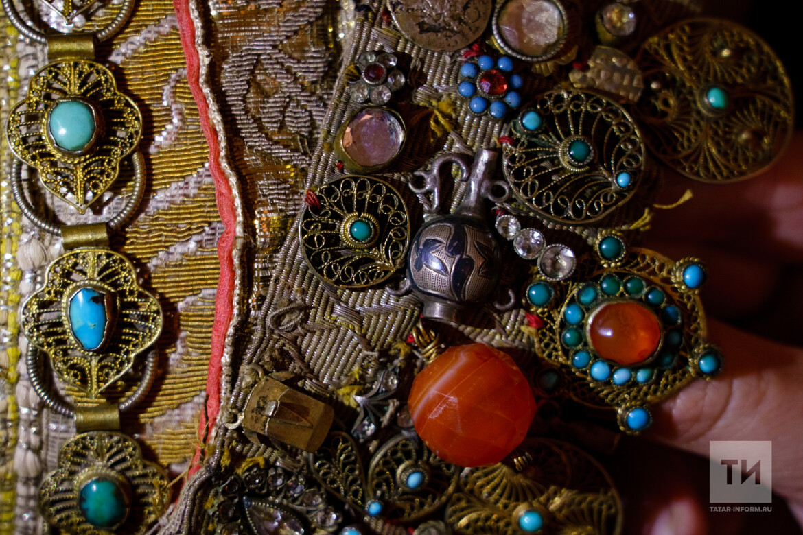 «Бугорчатая филигрань – вершина творчества казанских ювелиров. К этому пришли в конце XVIII – начале XIX века. Популярный камень в ювелирных украшениях у многих тюркских народов – сердолик. Он и как оберег идет, и как оберег воинов в Средней Азии. В XVIII веке в основном носили кораллы. Везли их по Волжскому пути из Средиземного моря, через Черное море и через Волгу. Когда были открыты месторождения на Урале, образ татарских украшений стал меняться. Кроме сердолика появился малахит. А потом научились имитировать малахит – он был дорог, делали из эпоксидной смолы, подкрашивали», – рассказала собеседница.