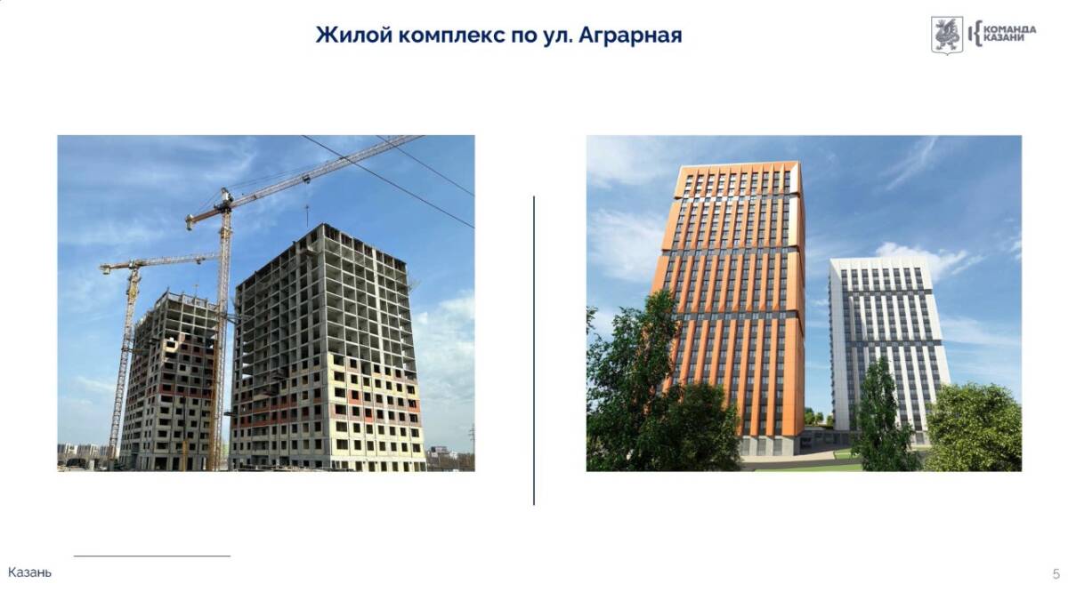 Параллельно в городе продолжается реализация программы поддержки обманутых дольщиков. На улице Аграрной ведется строительство жилого комплекса с 342 квартирами для пострадавших дольщиков ЖК «Золотая середина». Комплекс, включающий подземный паркинг на 295 машино-мест, планируют сдать в 2026 году.