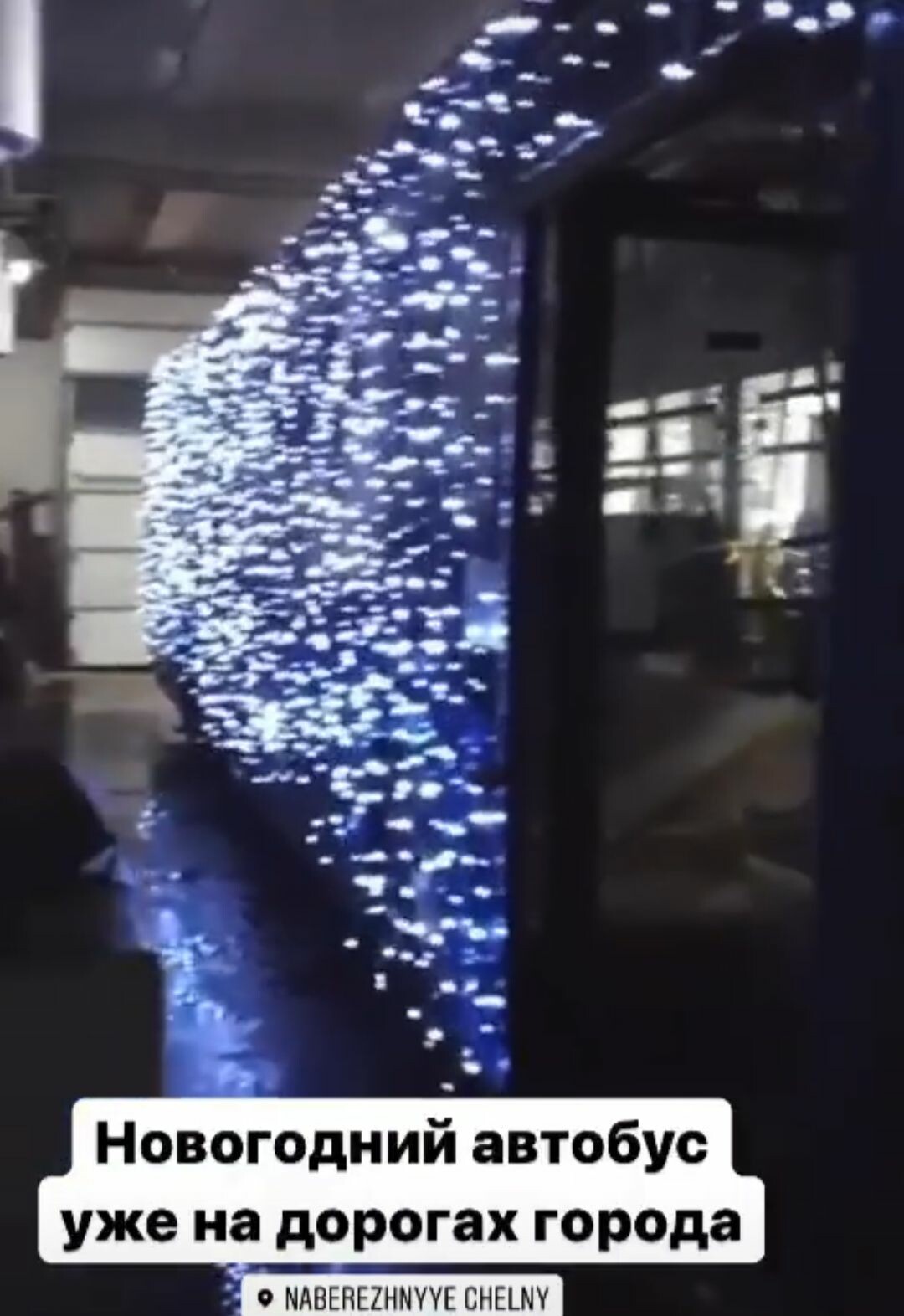 На улицы Набережных Челнов вышел по-новогоднему украшенный автобус №22. Кадрами с транспортным средством, переливающимся яркими огнями, в соцсетях поделились горожане.