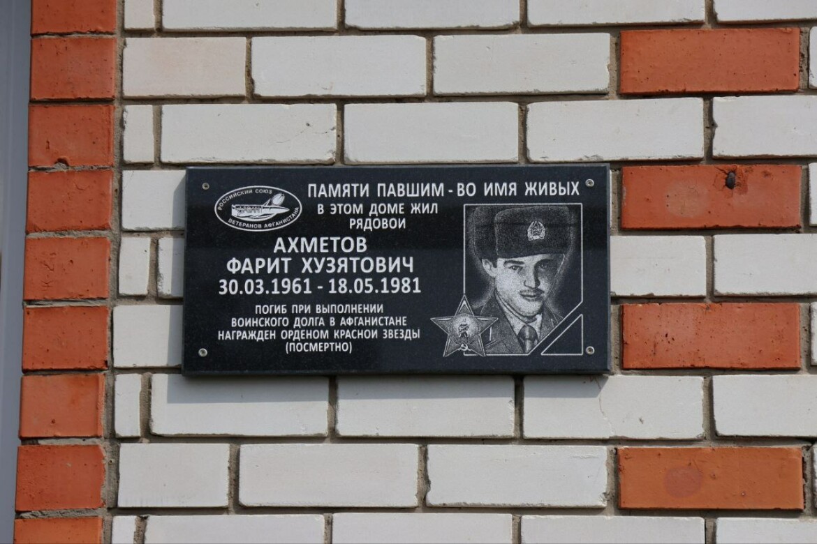 В Татарстане на трех домах установили памятные доски с юношами, погибшими в Афганистане. Такими табличками увековечили память бойцов. На досках, установленных на родных домах военнослужащих, изображены фотографии бойцов, годы жизни и обстоятельства смерти. Организовал установку районный Совет ветеранов боевых действий.