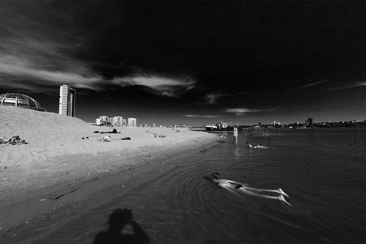 4. Устье Казанки, правый берег. Выплывающий на берег мальчик напомнил мне Ихтиандра из «Человека-амфибии». Конечно, эта фотография не несет большой смысловой нагрузки, она интересна скорее формами объектов и тем напоминанием, что все мы вышли из воды. И еще в ней есть какая-то общая загадочность.