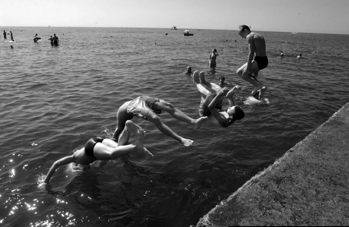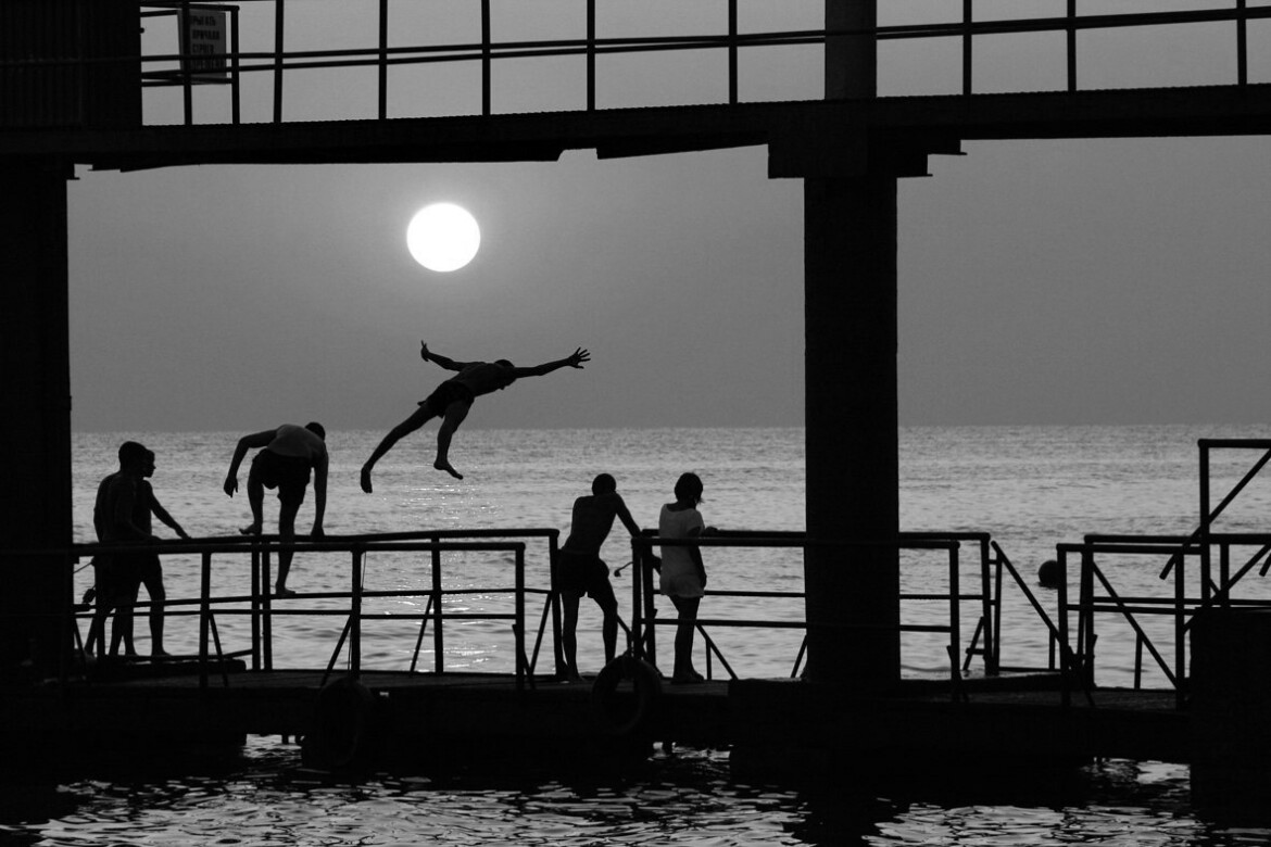 6. Сочи, Черное море. Я тогда снимал «Кинотавр», пляж был совсем рядом, и я приходил на него подглядеть разные сюжеты. Фотоаппарат дает времени замерзнуть. Эти ребята застыли, как в той детской игре – «Раз, два, три, морская фигура замри».