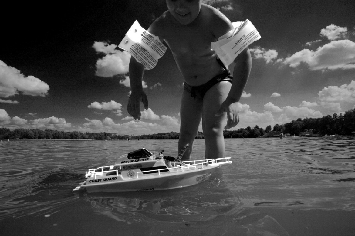 3. Опять Долгопрудный – я жил когда-то рядом с этим водохранилищем и часто ходил снимать «пляжный мир». Мы видим маленькую игрушечную яхту и большого человека, в данном случае ребенка. Обычно же все наоборот: яхта большая, а человек рядом с ней маленький — еще и потому, что яхта стоит бешеных денег. И она становится главной в этой паре. Но в детском мире главный все-таки человек.