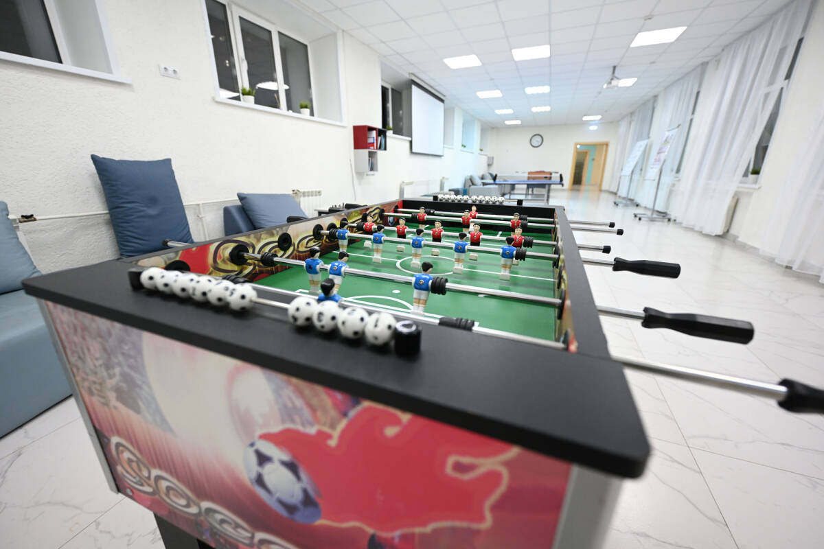 Отвлечься от учебы ребята могут в холле, где проходят турниры по настольному теннису, брейн-ринги, музыкальные битвы, юмористические игры. Воспитатели также приглашают учащихся на чаепития. Ужинают дети в столовой жилого корпуса на 40 посадочных мест, сюда же приходят родители – все победы на олимпиадах празднуют в столовой, поделился Гимран Абдуллин. При этом в жилом корпусе нет компьютерного класса, актового и спортивного залов для полноценного учебного процесса.