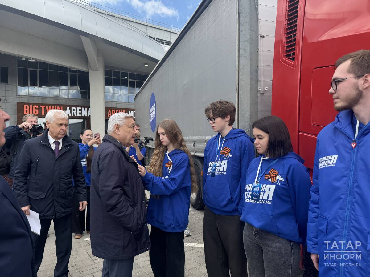 Перед отправкой место погрузки посетил Председатель Государственного Совета Республики Татарстан Фарид Мухаметшин. Он осмотрел формируемый гуманитарный конвой, пообщался с волонтерами о составе груза и логистике.