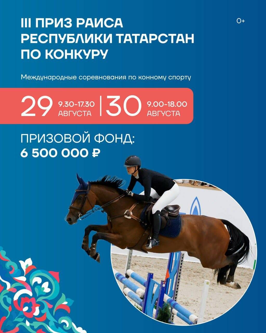 Параллельно, 29-30 августа, на Манеже Республиканской спортивной школы по конному спорту пройдет международный турнир на III Приз Раиса Республики Татарстан по конкуру. На соревнованиях, включающих 11 маршрутов различной сложности, выступят 160 лошадей из 12 регионов России, а также Белоруссии, Узбекистана, Казахстана, Кыргызстана и Литвы. Призовой фонд турнира составляет 6,5 млн рублей.