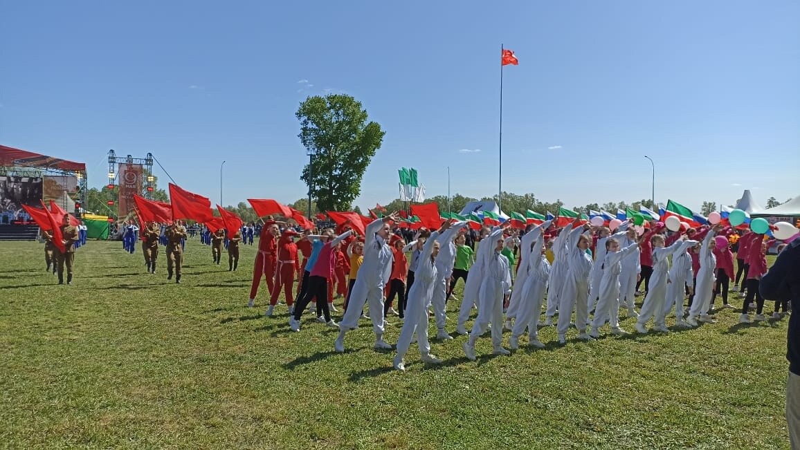 В этом году по территории стадиона «Молодежный» в Елабуге торжественным маршем прошел парадный расчет участников специальной военной операции на Украине. Праздничный митинг начался с выноса на главную сцену праздника государственного флага Российской Федерации и знамени Победы. Собравшихся поздравил глава Елабужского района Рустем Нуриев.