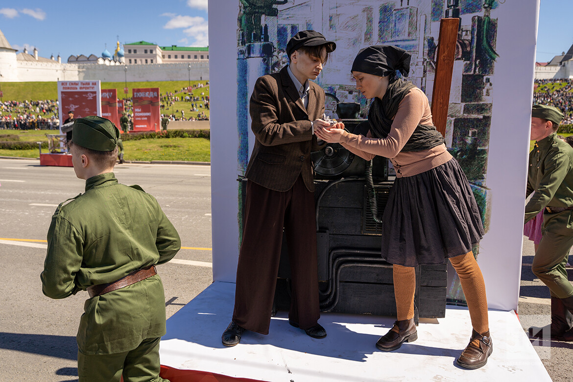 Творческие коллективы города, студенты и преподаватели Елабужского колледжа культуры и искусств подготовили театрализованное представление «Нам нужна одна Победа!». На празднике также организовали инсталляции в рамках муниципального конкурса «Тыл фронту», развернули военно-полевую кухню.
