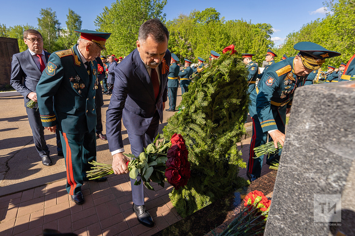 День Победы традиционно начался с возложения цветов погибшим солдатам. Премьер-министр Татарстана Алексей Песошин почтил память воинов Великой Отечественной войны на Арском кладбище Казани.