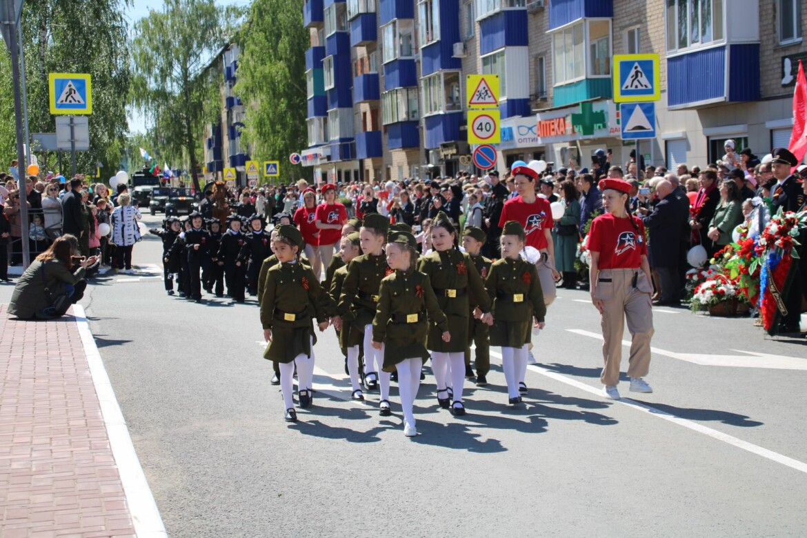 Парад открыл мужской и женский составы ФКУ ИК-10, затем прошли маршем представители Отдела МВД России по Менделеевскому району, юнармейцы и гимназисты. Участие в параде приняла и военная ретротехника. В завершение к памятнику Неизвестному солдату возложили цветы, а в небо запустили красные шары и голубей. Далее все желающие смогли попробовать солдатскую кашу.