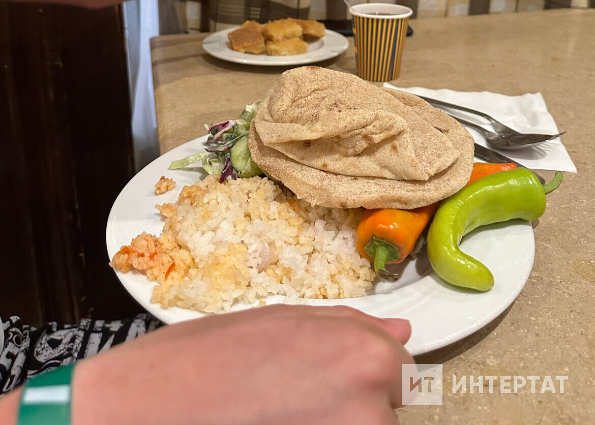 Нас проводили на обед. Ресторана, что был на фотографиях, не было и в помине, друзья мои, нас привели в настоящую столовку! Количество народа, несмолкаемый ни на секунду шум и гам напомнили базар! Обещанного шведского стола тоже не оказалось, разнообразие блюд – всего лишь иллюзия. Например, на выбор был рис с фасолью, рис с морковью, просто рис без ничего и рис с молоком. Курица, говядина и страшные рыбьи головы. Душу грели лишь десерты (их давали только вечером), пахлава у них такая же вкусная.