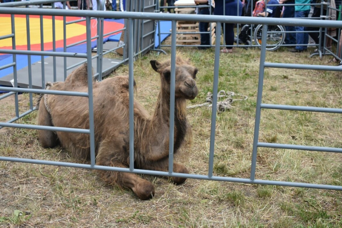 Абсолютным батыром Спасского района Татарстана стал Ришат Сагиров в весовой категории 100 кг. Организаторы мероприятия вручили борцу в подарок живого верблюда по кличке Димка и барана.