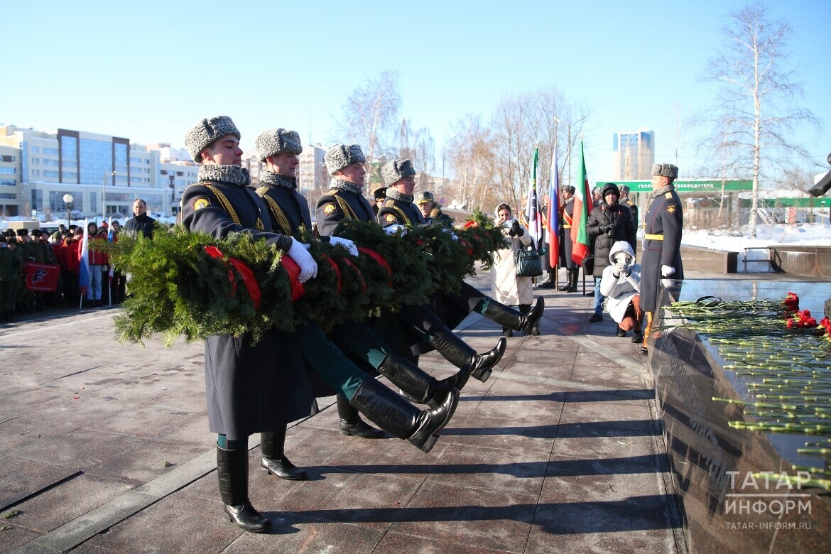 После выступления приглашенных гостей курсанты Казанского высшего танкового командного Ордена Жукова Краснознаменного училища положили цветы к подножию монумента воинов-интернационалистов. Сразу после этого была объявлена минута молчания.