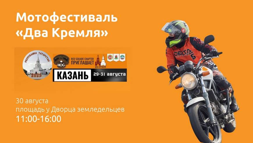 На фестивале установят рекорд России по количеству мотоциклов с флагами и георгиевскими лентами, которые проедут колонной от Казанского Кремля до площади у Дворца земледельцев. Праздник продлится до 16:00.