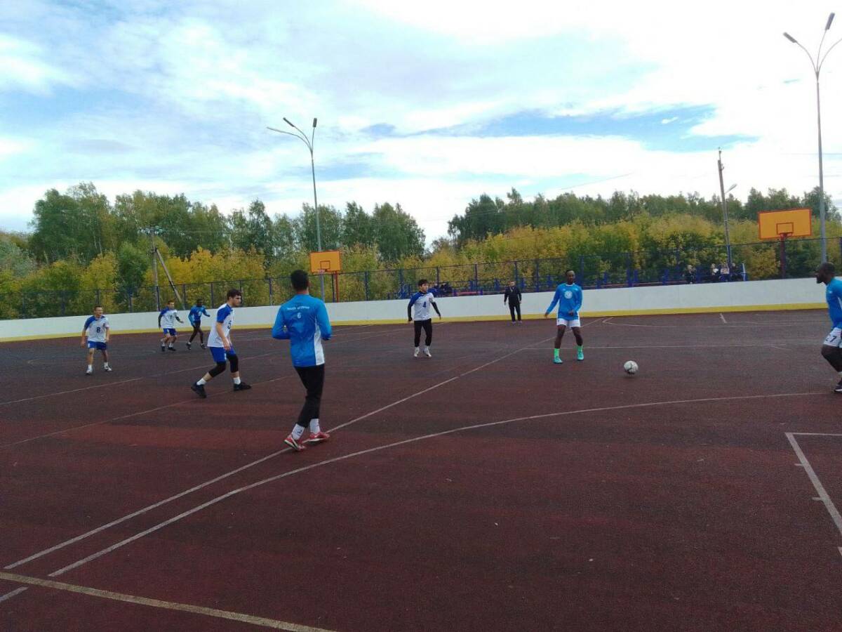 В спортивном комплексе «Чемпион» африканская молодежь провела товарищеский матч по футболу с местной командой, капитаном которой является глава Верхнеуслонского района Евгений Варакин. Игра окончилась победой хозяев со счетом 5:3.