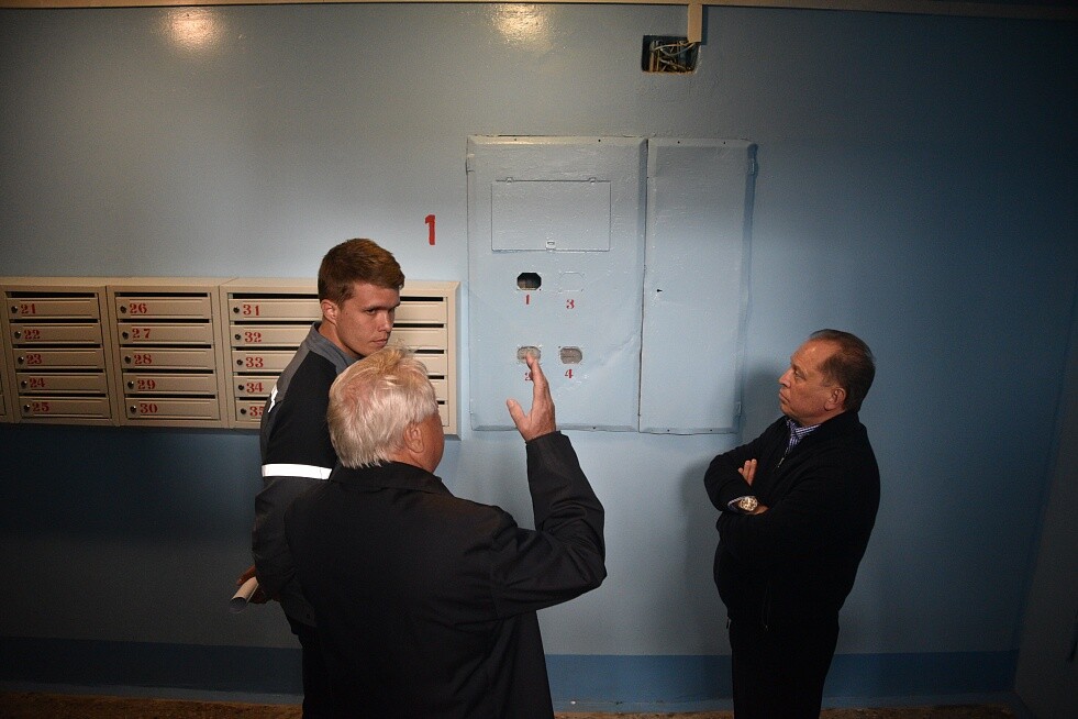 Первым рабочая группа посетила большой двор, охватывающий два дома, по проспекту Мира 28 и 30. Работы здесь практически завершены — отремонтированы дороги и тротуары, оборудован центр двора, где предусмотрены места для детской площадки и спортивного инвентаря. В доме №30 параллельно проводится ремонт подъездов. Айдар Метшин, осмотрев один из них, дал указание, что не стоит оставлять «мелочи» на потом, подразумевая старые электрощитки, оставшиеся без замены.