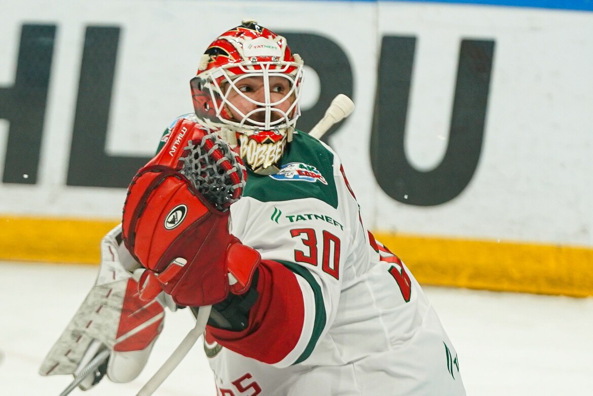 Затем уже сам голкипер «Ак Барса» пропустил между ног шайбу после не очень сильного кистевого броска Олега Морозова от синей линии – 0:2.
