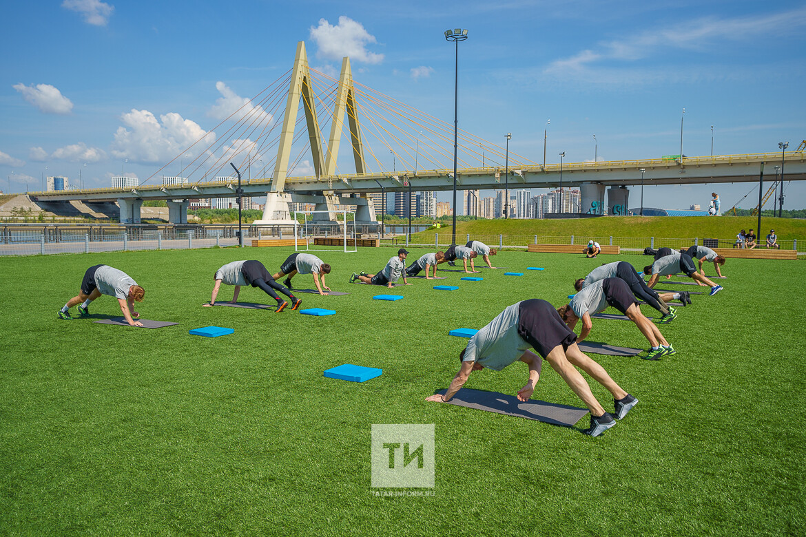 Игроки казанского «Ак Барса» провели сегодня утром открытую тренировку для СМИ. Занятия хоккеистов прошло на футбольном поле в парке «Урам».