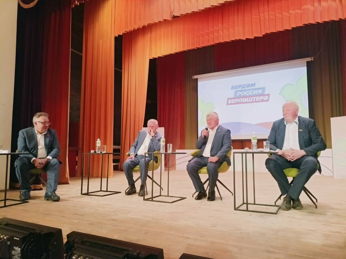 Аксубаевцы приняли автобусный марафон «„Единая Россия“ объединяет» после Лениногорского района. Встреча с населением в районном Доме культуры состоялась при участии зампредседателя Комитета Госсовета РТ по законности и правопорядку Александра Чубарова, депутата Госсовета РТ, директора ОАО «Алексеевскдорстрой» Фоата Валиева и главы района Камиля Гилманова.