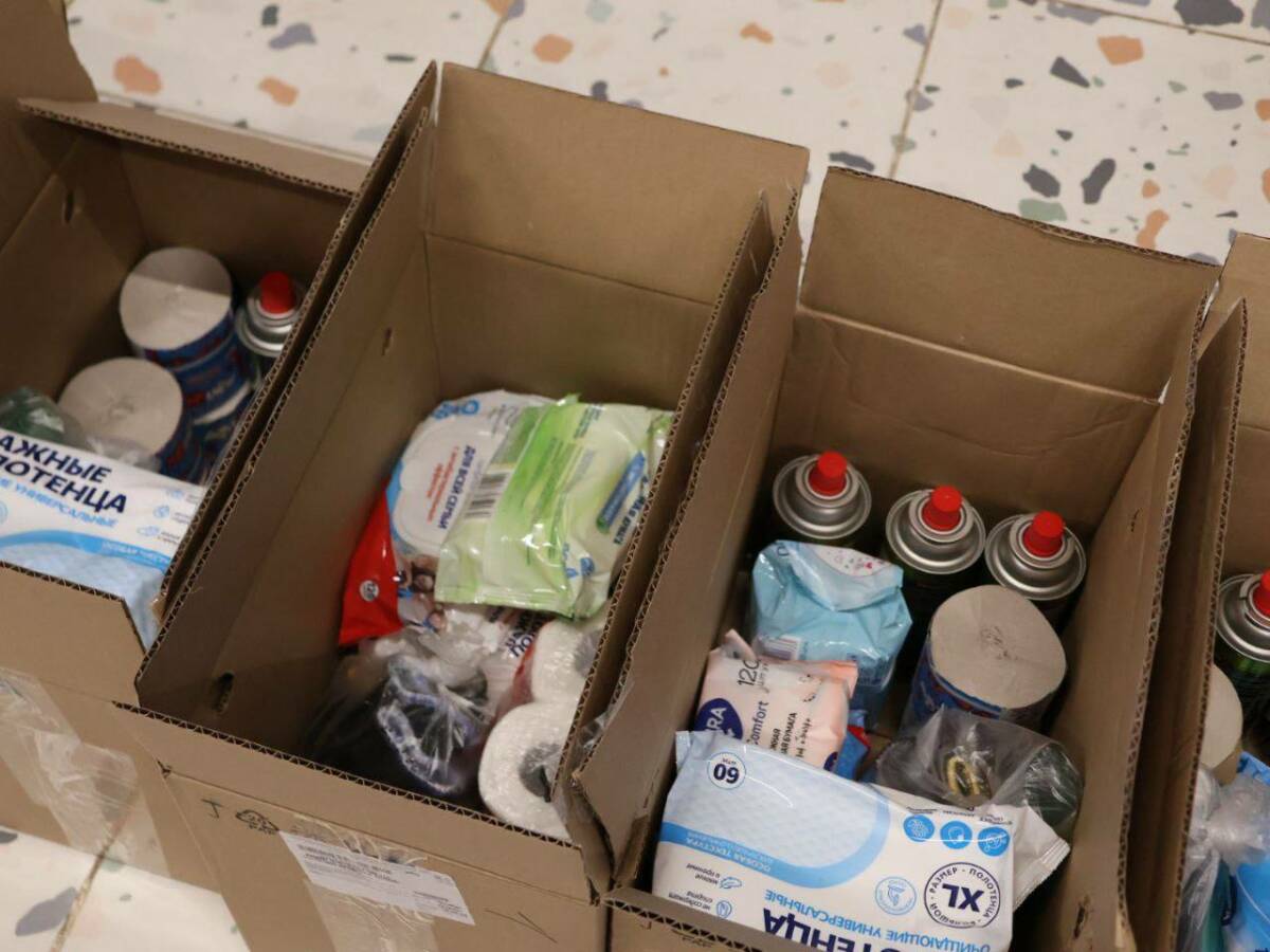 Волонтеры фонда «Мы вместе» трудятся над заполнением именных коробок для каждого участника операции. Как рассказала волонтер Лилия Гикрамина, подготовлено 170 коробок: 85 из них содержат продукты питания, а остальные 85 — предметы первой необходимости.