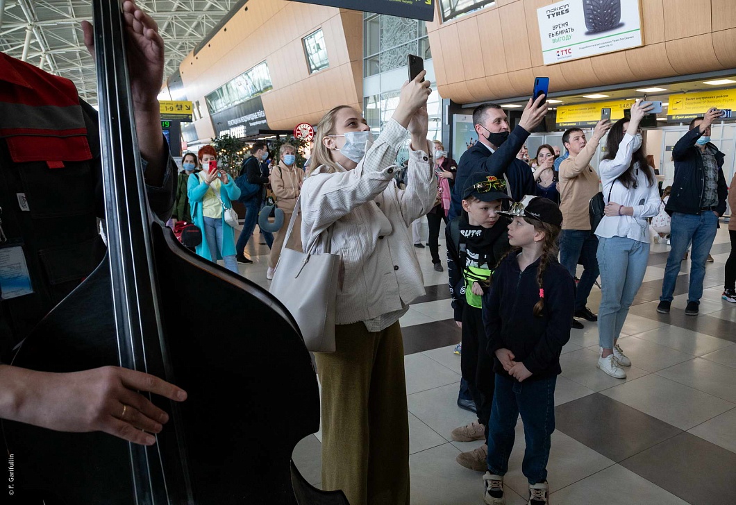 Как сообщает пресс-служба театра, мероприятие состоялось в формате флешмоба. На тот момент в аэропорту находились более 300 человек, для которых акция стала приятной неожиданностью.