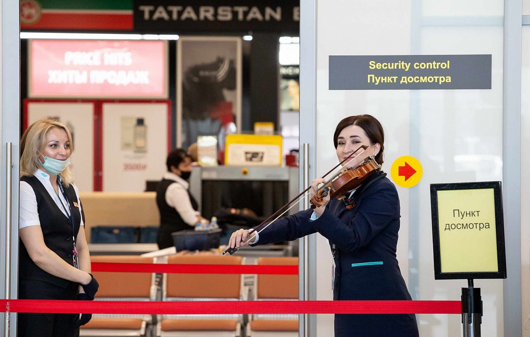 Актеры театра Камала устроили музыкальный сюрприз для пассажиров аэропорта Казани