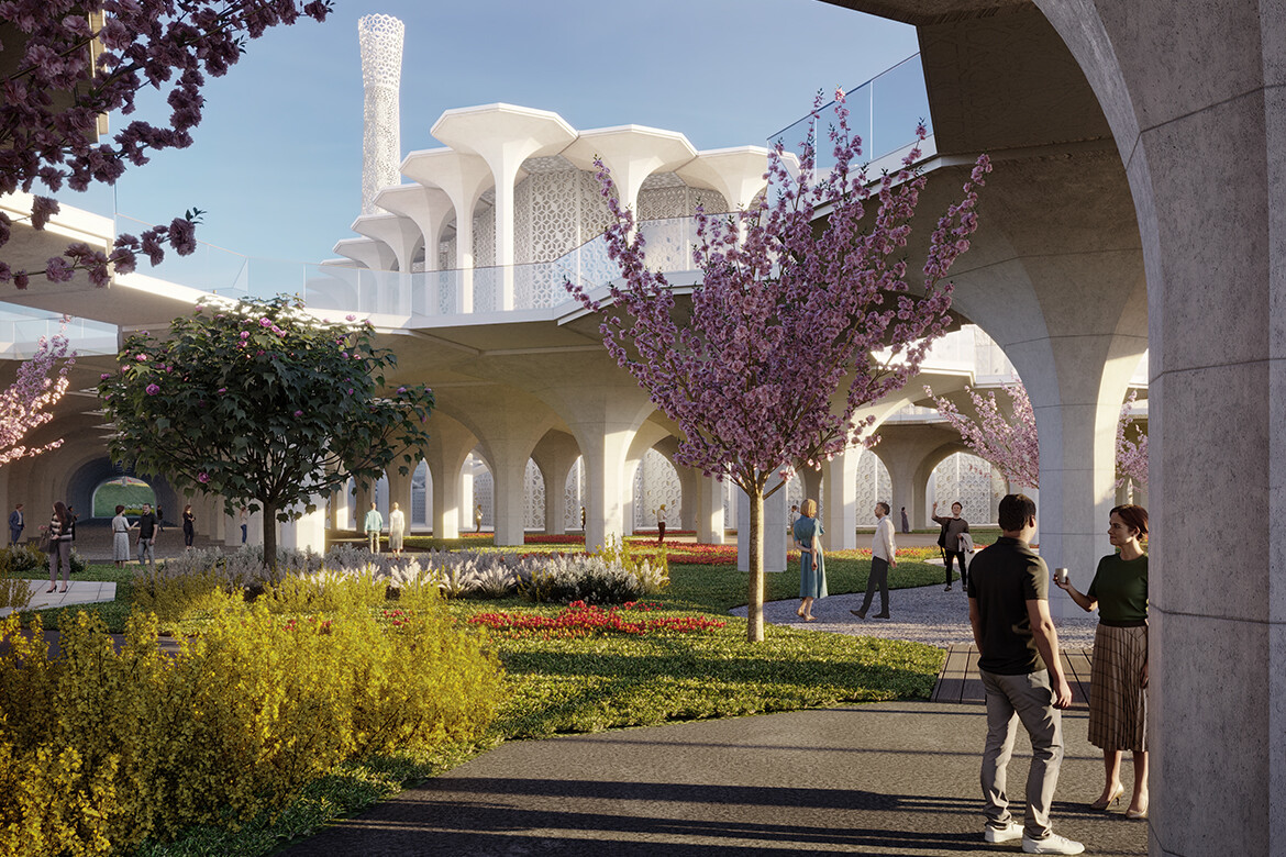 «Наш проект мечети и парка – это сложное двухъярусное пространство, которое в какой-то степени напоминает парк Гуэль в Барселоне»