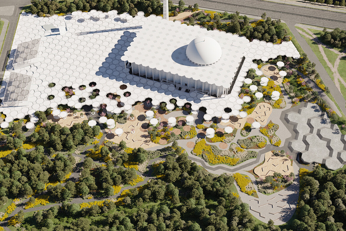 Парк будет иметь свои входы со стороны жилых массивов, можно сказать, он диффундирует с ними через общую структуру, основанную на восьмигранном орнаменте. Эту систему мы сделали модулем, который постепенно растворяется в естественной зелени так, чтобы не было явной границы.