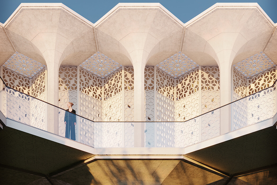«В основе структуры фасадов лежит очень простой геометрический орнамент, который легко относится как к исламской традиции, так и к современной геометрии»